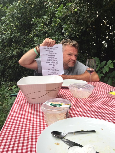 Time for dinner. The day seems so long, it seems hours away yet before the band are on. We have a great dinner at the side of the van with the trees next to us.