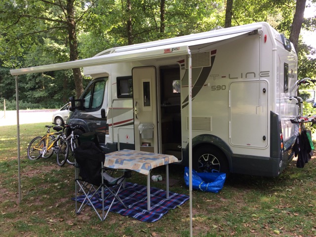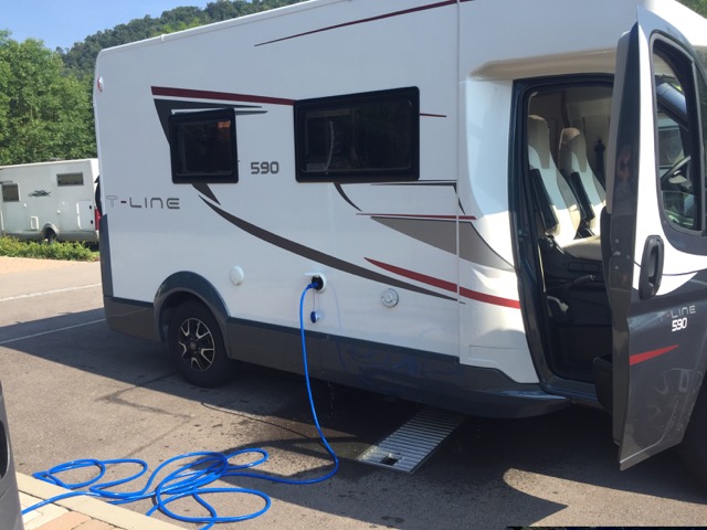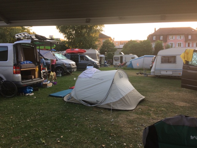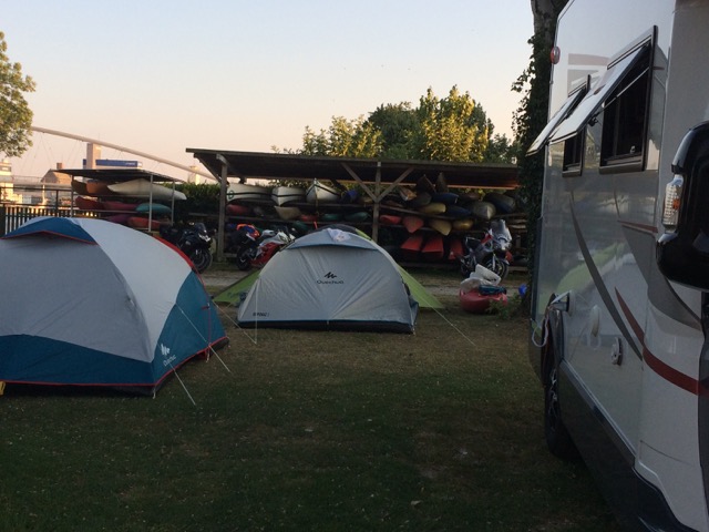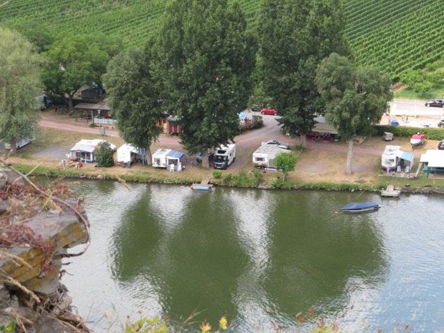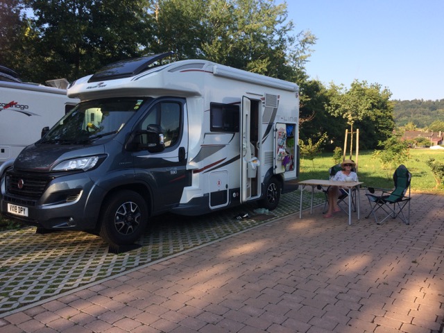 It’s a nice clean place, barriered entrance and nice pitches that we can choose from, but we are plagued with flies, loads of them. It’s hot, very hot, and we are still a bit tired from our noisy nights in Lorelei so we have bit of lay down. It’s too hot.