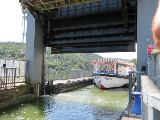 Once we are installed and comfortable in our fly-free pitch we head off into town. It’s a Monday today and as is the way in France, most of it is closed. There is a nice old water mill here so we have a look around it. We are spotted by the curator and he very kindly invites us in for a personal tour of the mill. He starts up the mill and gives us a demonstration of the equipment, especially the foot operated lathe, which Hayley likes. It’s all very interesting and very nice of the guy to take the time and show us around. What a nice man.