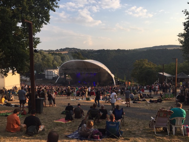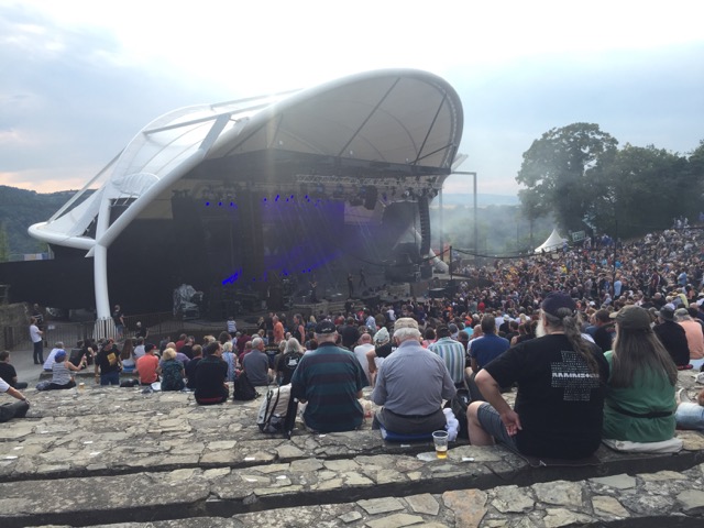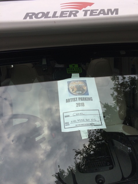 It’s late afternoon and Camel are not on stage until 10:30 tonight, so we go back to the van and try to relax, but the engine noise is driving us mad. Sometimes it goes off once the AC has reached temperature, but it soon starts up again. The back of the bus’s engine bay is also open to help with the cooling. It’s so loud.