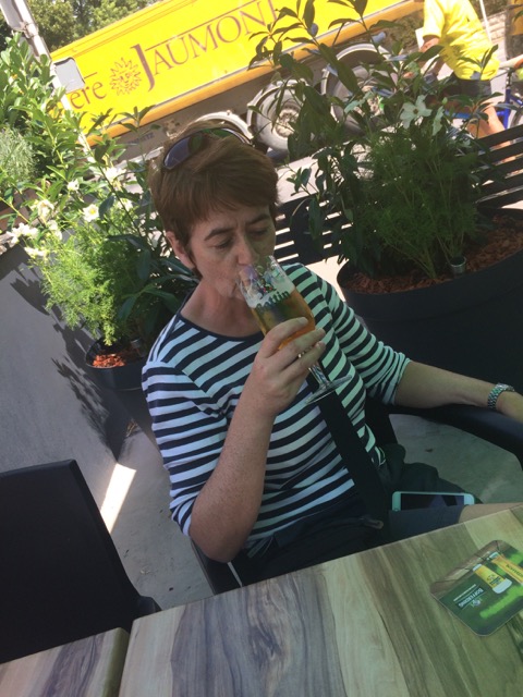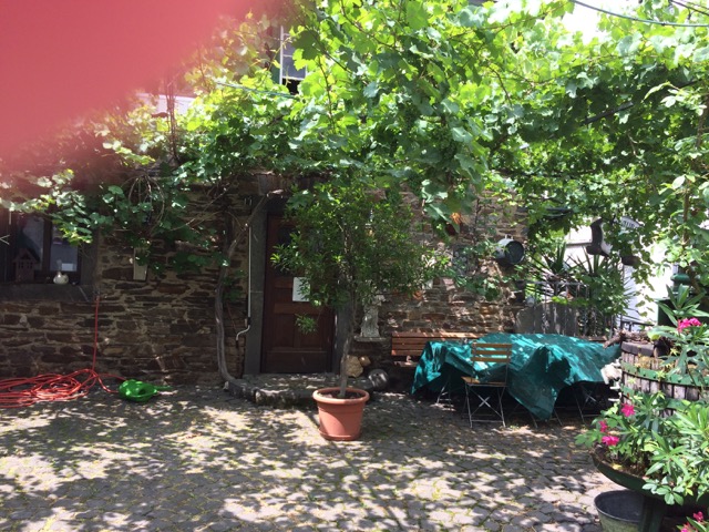 It’s nice with a glass of red wine in the shade and the Volvo diesel engine from the bus next door!