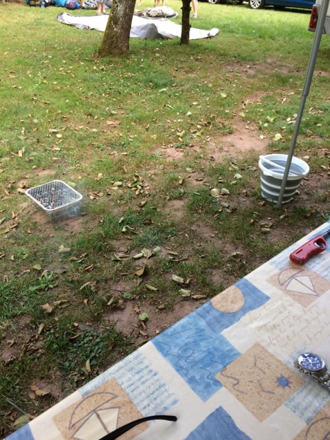Time for dinner. The day seems so long, it seems hours away yet before the band are on. We have a great dinner at the side of the van with the trees next to us.