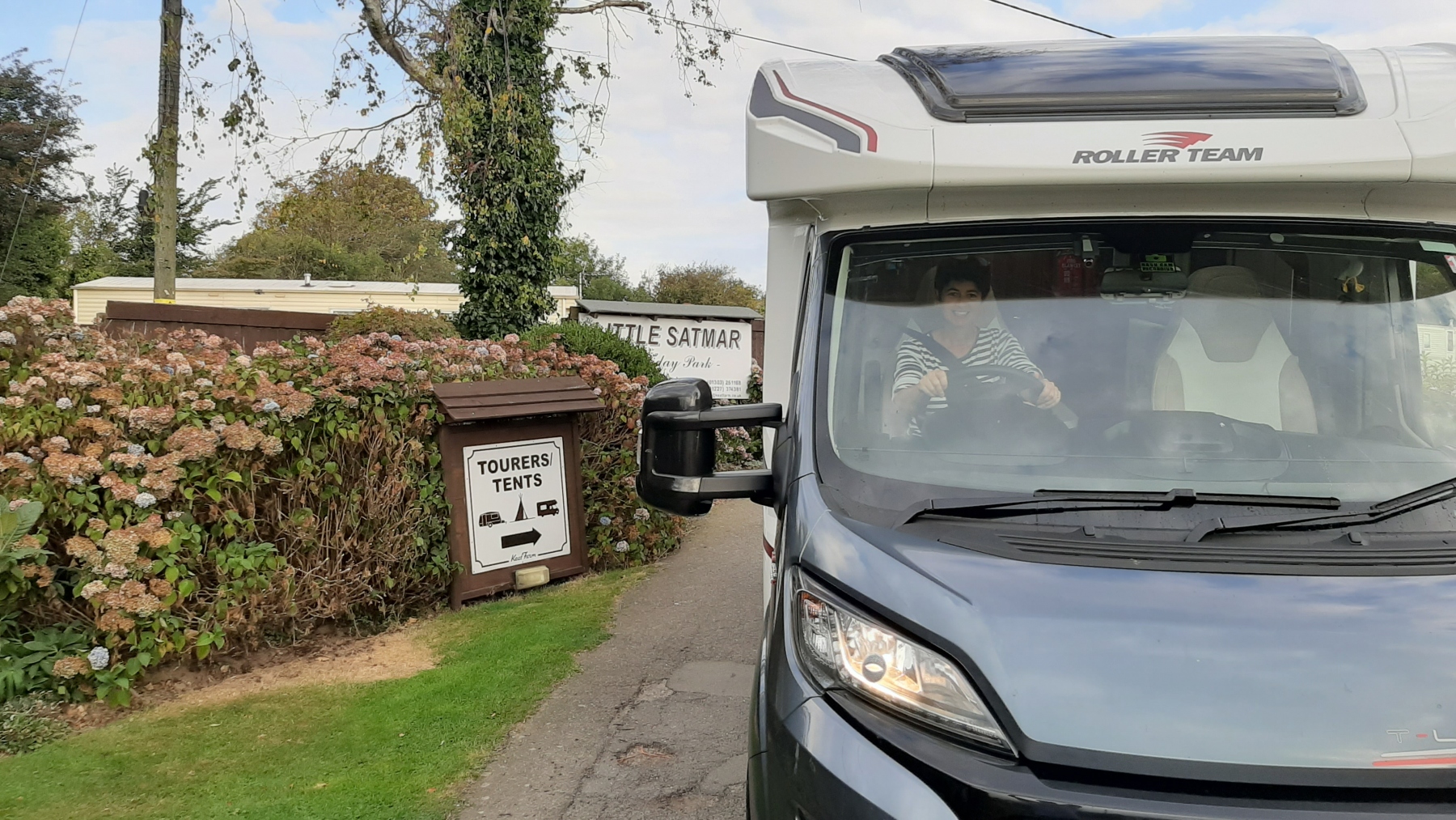 Today is the real starting day for the holiday, we will do the drive to Dover, firstly with a short jump from Fishbourne to Portsmouth. As we hoped, an uneventful day. We check into a very pleasant site called Little Satmar. Guess what? The sun is out. It’s a lovely afternoon and evening, so much so that we have dinner outside in the setting sun. Maybe, just maybe, they have got the weather wrong…