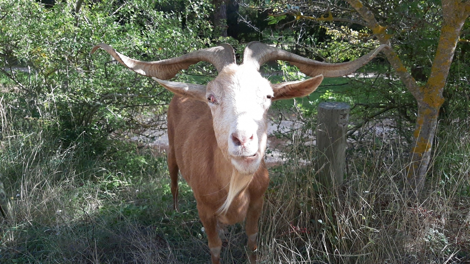 All you can hear is bird song and bees. We sit enjoying the warm sun and it’s not too long before we are joined by Mr & Mrs. Goat. A male and a female are wandering around chewing the grass and visiting the vans to see what else they can get their horns into. They are no trouble at all and soon wander off. They are local as they are soon spotted sniffing around other vans.