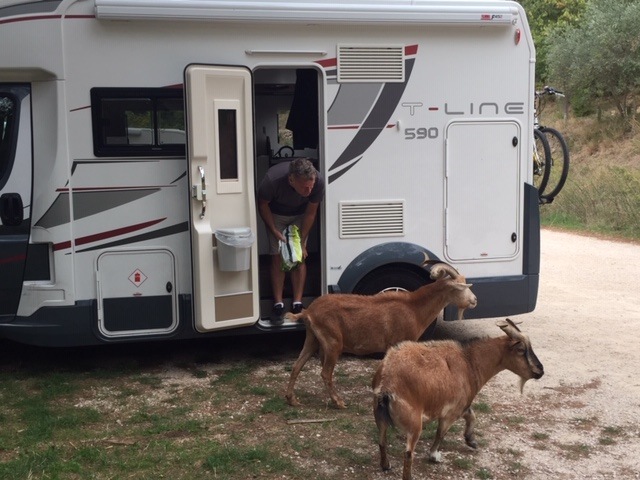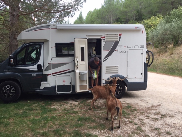 Whatever happens we are going inland, only a little to an aire that is 4.50 euros for the night. It is located in a forest and has goats wandering around. Sounds good. After another half an hour of twisty roads we are finally on a motorway, then two then three. By the time we had finished this short journey has probably cost 10 euros in tolls. French tolls can be expensive.