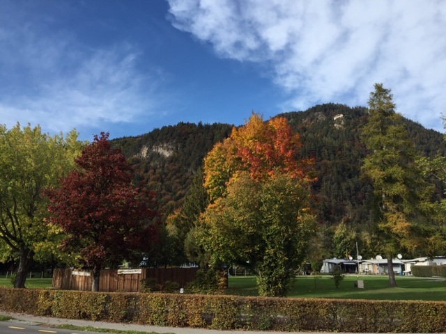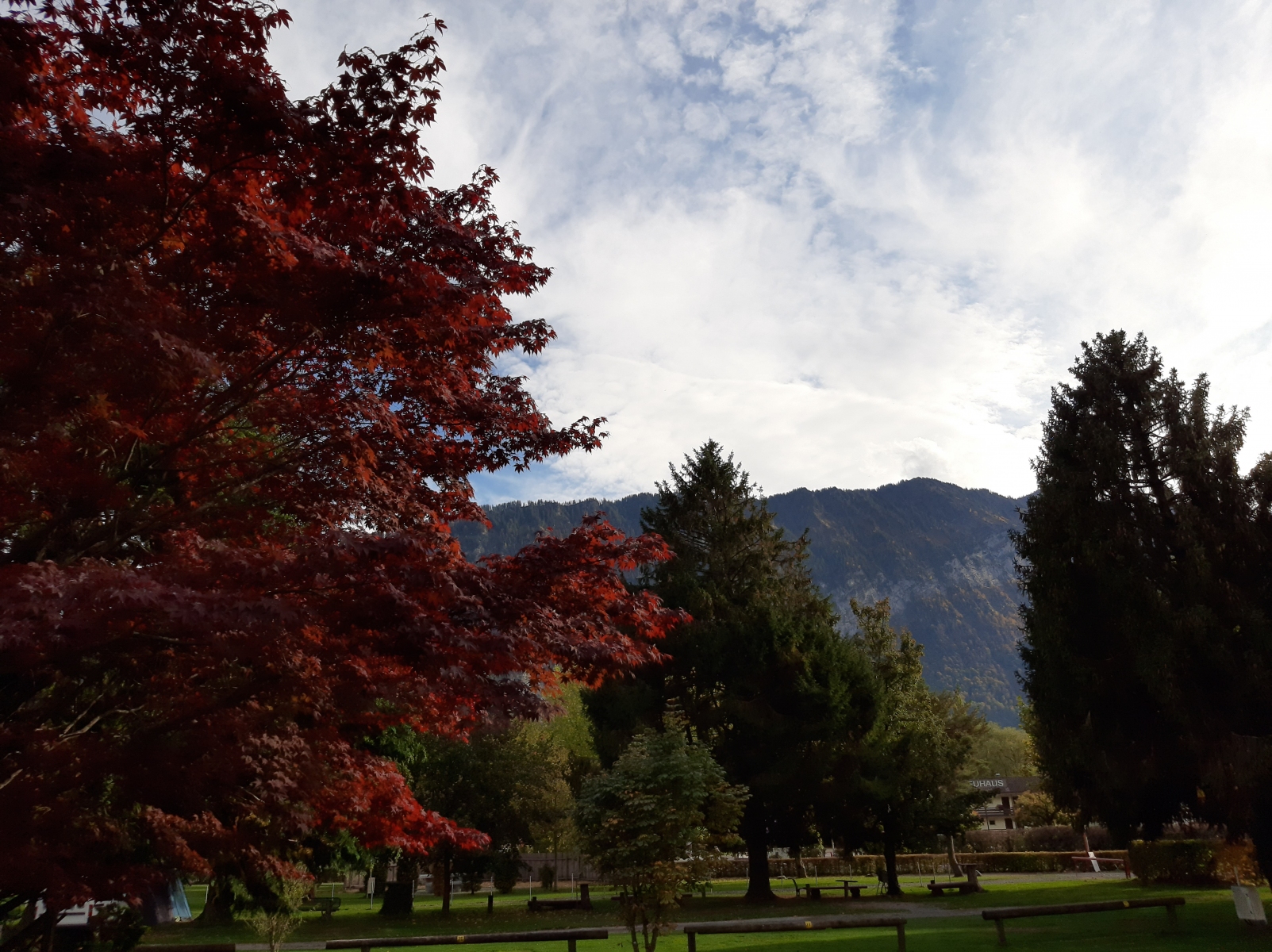 We are heading for a site called Camping Alpenblick. Switzerland is very expensive and this site is no exception however we are out of season and we can use a discount card called ACSI. Very useful and you can get some excellent rates if you present the card. The staff are very friendly here and we are given a small but lovely pitch close to the amenities complete with a wonderful view of the surrounding hills and mountains. We are also given a card which allows us free travel into Interlaken town. Very handy.