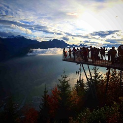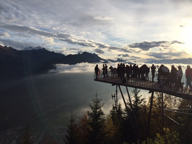 A great time is had in the tree park but now what to do about dinner. It’s between a traditional local wood hut type, stew, and dumplings place or a 64-degree incline, 1.5km uphill train to the top of a place called Harder Kulm. Now if you don’t do anything else here in this post at least look at some of our Instagram pics in the links above. It was a truly brilliant experience. and one that we thoroughly enjoyed.