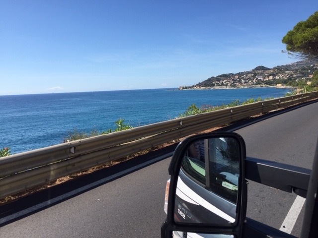 It’s another twisty drive along the Italian coast which we take turns with. Finally we arrive at what is basically a public car park which for 10 euros you can park over night but with a great view of the sea. It’s busy here today, but very busy and we find the last suitable space. We say suitable, there were another two possible spaces but because of the inability of people to park their vans properly the space is unusable. Maybe they do it on purpose…?