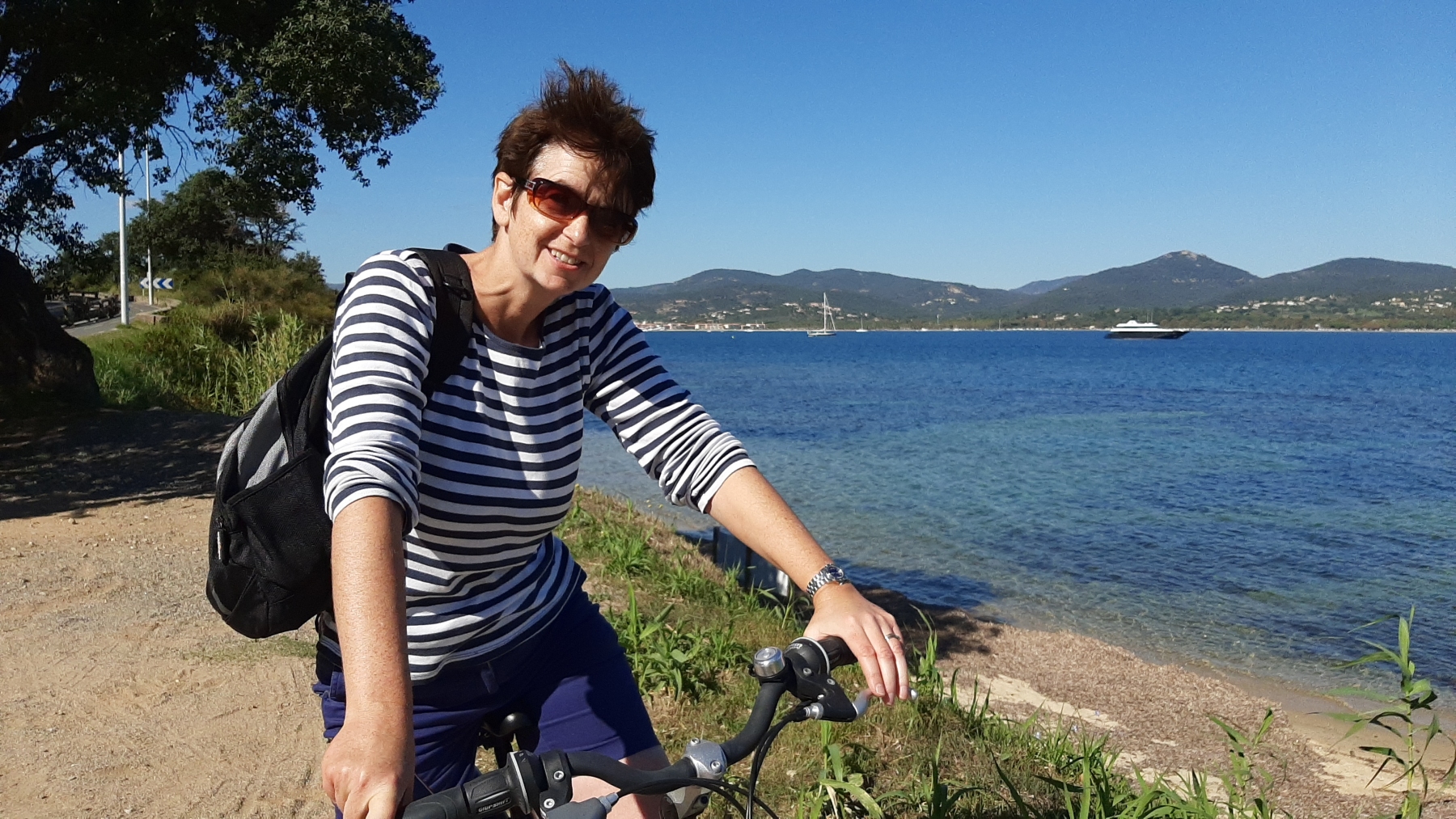 The plan is to cycle the 9 kms around the bay to St Tropez for lunch and back via Port Grimaud. Soon we are ready and off. It’s great for cycling here with a cycle track almost all of the way.