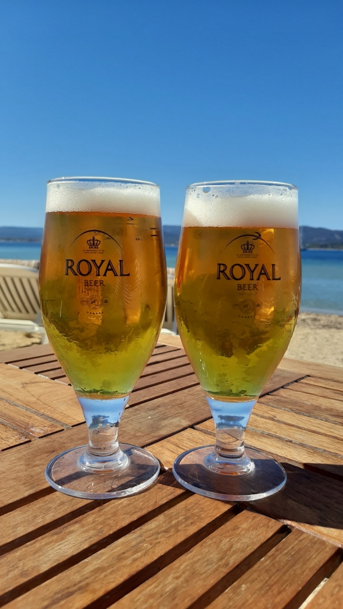 After lunch we set off for the van on the other side of the bay. 10 minutes in we find a beach bar so of course needs must, we take a seat at the water’s edge and enjoy a small very cold beer. Delicious.