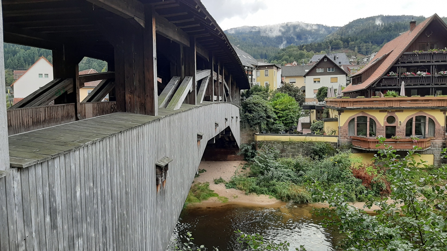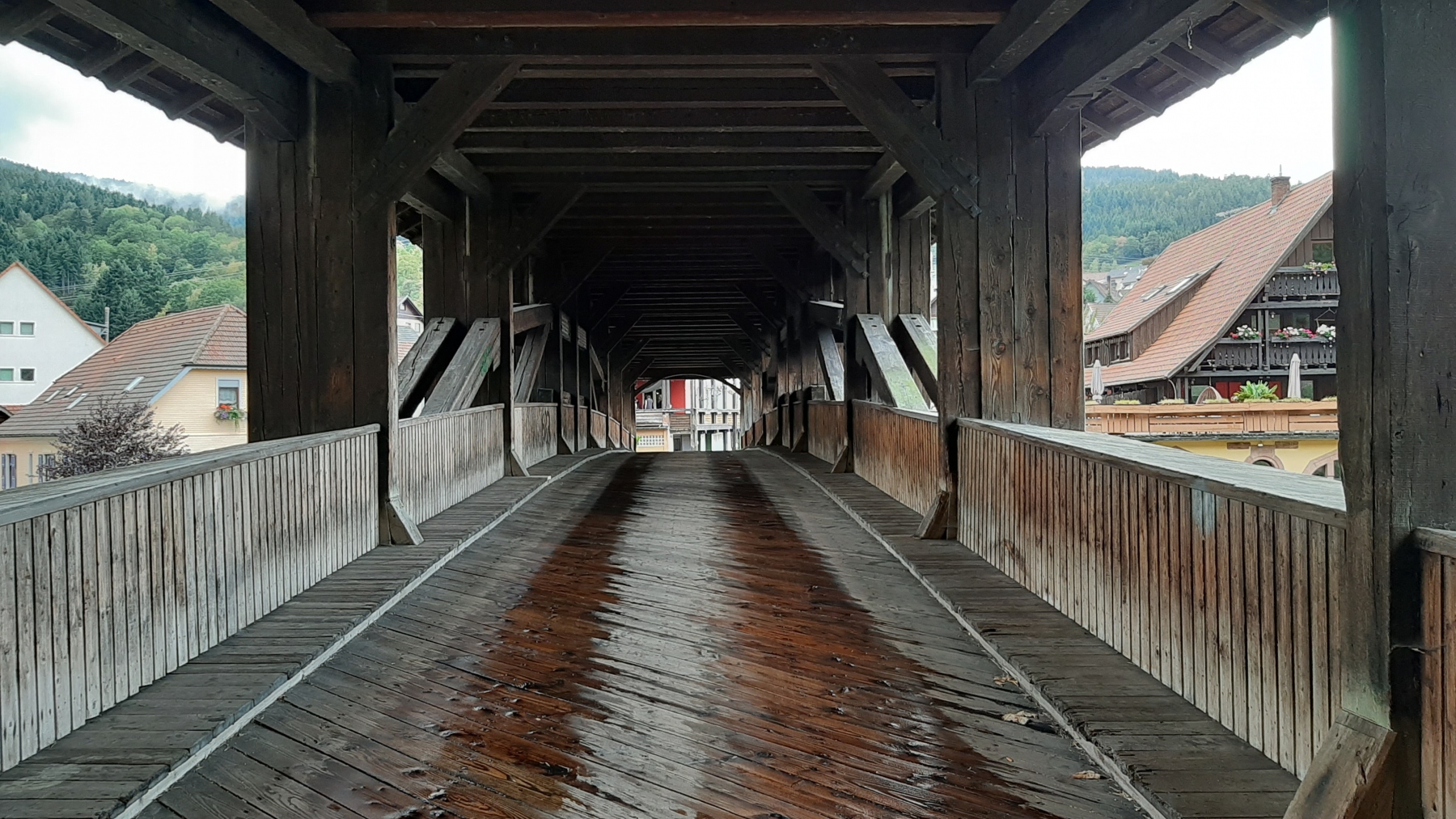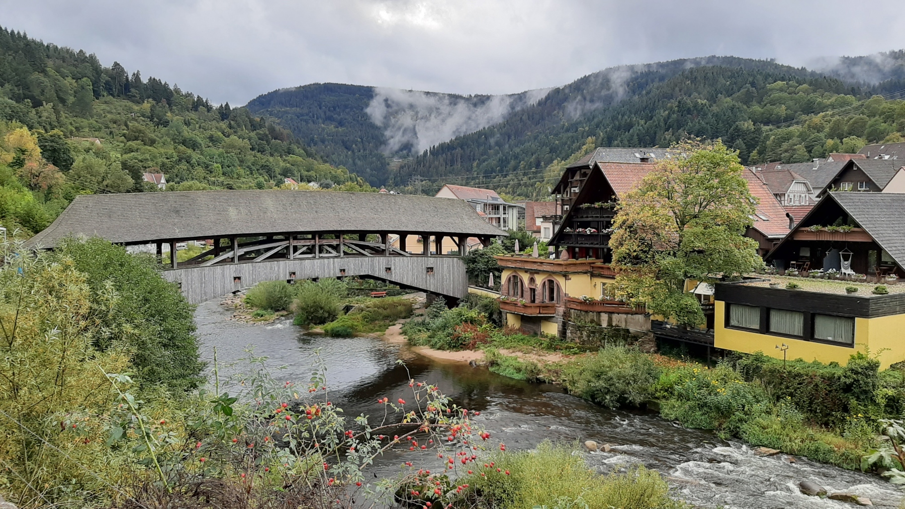 We arrive at the aire in Forbach. Wow!!! It is amazing, it’s empty, we are it, why? Why is such a stunning place empty. There is space for 6 vans all with an amazing view of the valley and the Black Forest. Fantastic. We hook up the power and make ourselves at home before setting off for a walk into the lovely town of Forbach and a visit to the covered wooden bridge. Well worth a look.