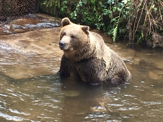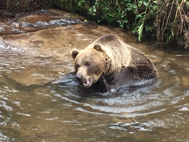 To make up for our indecision we get a local bus and take the half hour journey to a Bear Park. Yes they have a fantastic park here where they have taken in 10 to 12 bears that have been badly treated and allow them to roam free, secure of course from the public with sophisticated fencing. There are also some wolves and lynxs to see. We pay the 8 euro entrance fee and off we go. It’s not long before we spot some bears. They are quite something to see in their semi wild surroundings. Each bear has a sad story of mistreatment in the past so it is a pleasure to see them happy now. Wolves?