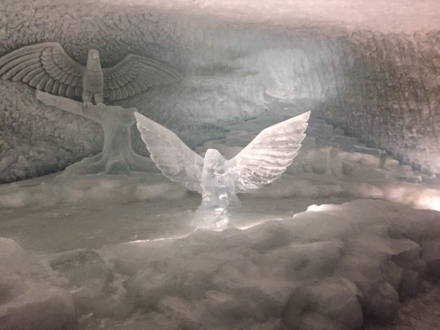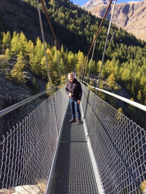 At the top is an exhibition called the Glacier Paradise which is basically a glacier that has been tunneled into and turned into an exhibition of ice carvings. Interesting and unusual. The high altitude is now affecting us as we are having to stop more frequently to catch our breath. After a quick drink outside on our way down sitting in the sun staring in awe at the Matterhorn we get back on the cable cars back down to Zermatt via a hanging bridge which is a short walk away before the last cable car to the bottom.