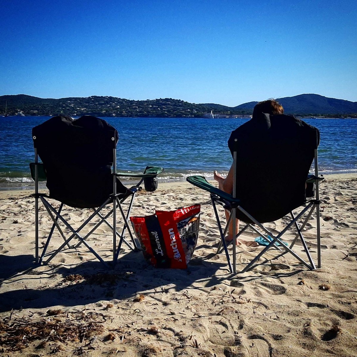 We are staying here another day. It’s lovely. Clear blue sky, 25 degrees+ heat and with a fabulous view of the bay with St. Tropez just across it why would we move on. Besides the forecast for tomorrow is some cloud so we will enjoy the sun here today and move on tomorrow.