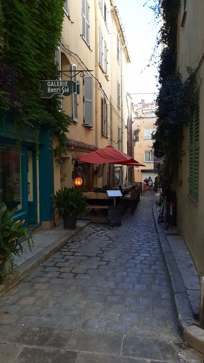 We reach St. Tropez 45 mins later. It’s busy but not mad busy, people are milling around looking at the beautiful boats that come here or having lunch on the open fronted restaurants in the marina. There a lots of shops here, expensive shops. It’s nice though to walk around all the lovely little streets with their small houses dripping in colourful flowers.