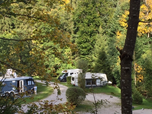 It was worth it though, the food was great all served in a nice courtyard where the outside temperature was bearable. Time for a walk and to work off this lunch. Baden Baden is a nice place but we feel that we have not done it justice and should spend more time here. Maybe next time. We get the bus back to the station and take the train back to the van where the sun is out, the sky is blue so we get our chairs out with a beer as the sun sets casting long orange shadows over the trees of the Black Forest while we have a chin wag with our traveling neighbours. The sun has set and the chill of an autumn evening closes in. It’s time we were in now.