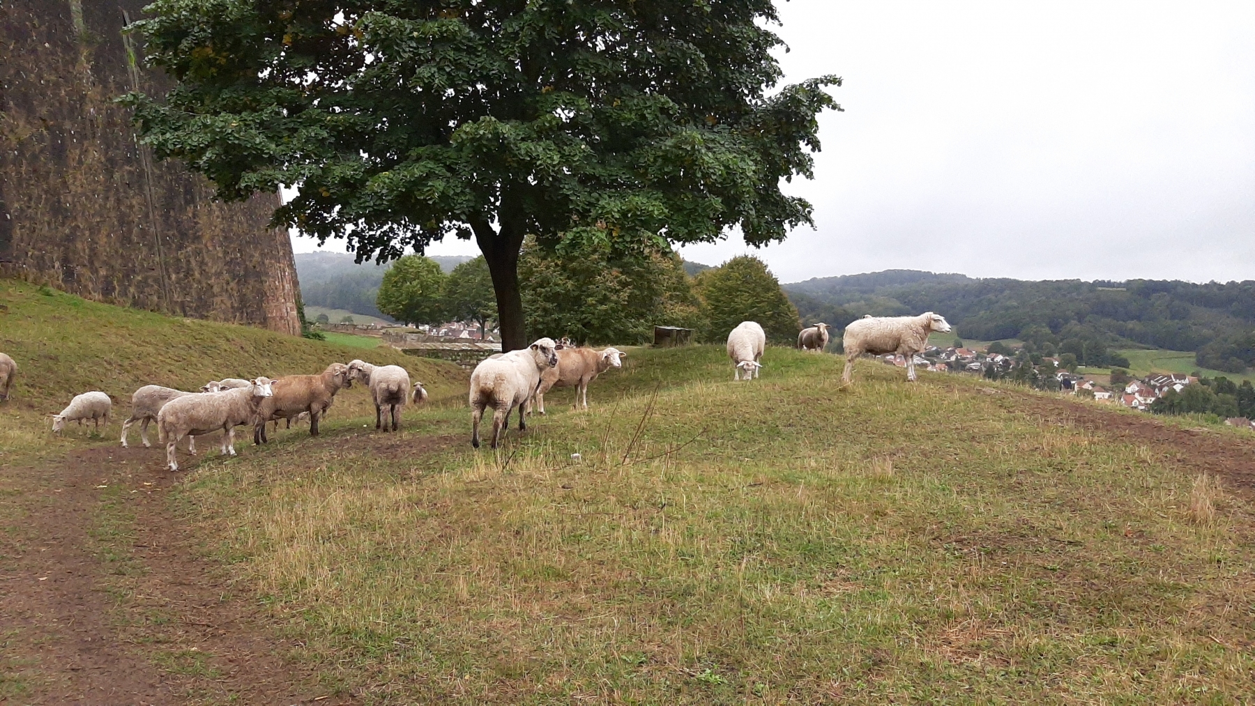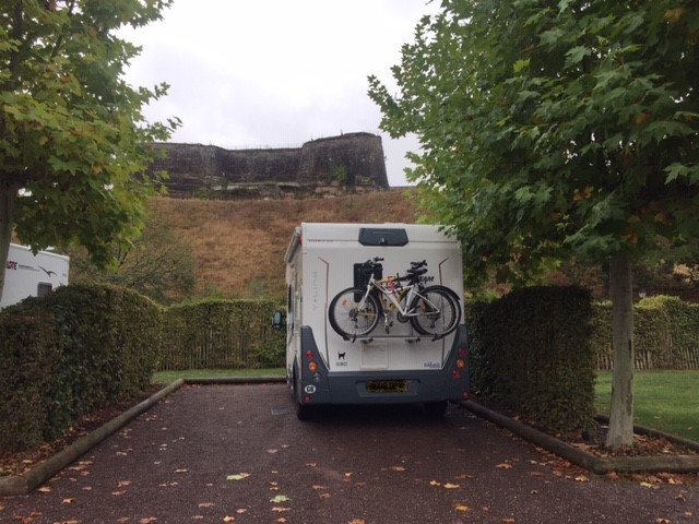The weather holds and we arrive at the aire. It is very nice. After a small wait we bag one of the five spaces that have beautifully manicured hedges around each space and settle in. We take a walk around the citadel which is quite spectacular with an equally spectacular view of the town below. We navigate our way through the roaming sheep and down into the town. Like Belgium it’s closed. Everything is closed!