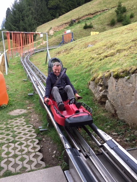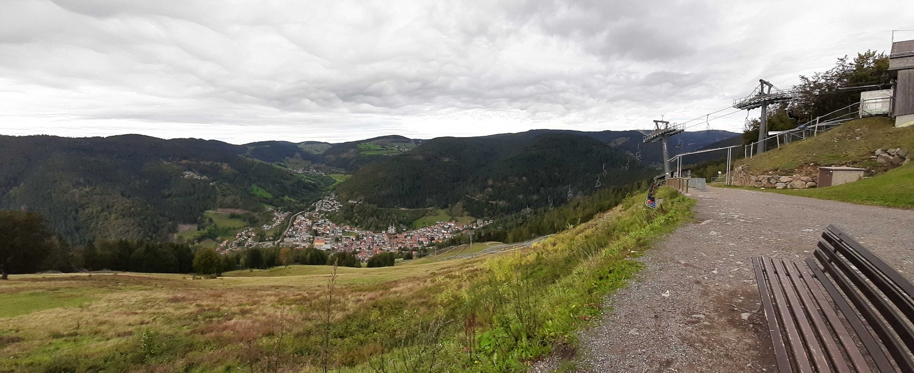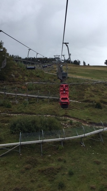 We set off and make for the town of Todtnau. We have been there before, it’s a lovely little traditional German town but it has the “Hasenhorn-Rodelbahn For 10 euros you go up on a very long, very high ski lift and come down on one of the world’s longest toboggan runs. The view from the top is quite something of the town below. In the winter snow it must be very picturesque.