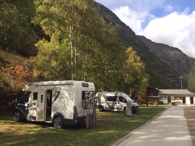 Once we embark it’s another 30 minutes of winding, twisting steep roads to Tasch where the campsite is based. We are welcomed by a very pleasant French lady who tells us that we can pitch wherever we like. Once settled we go for a walk around the town. There is not much here really, a hotel, couple of restaurants and a supermarket. The main thing here is the train station to Zermatt (a car free town) where we intend to go tomorrow.