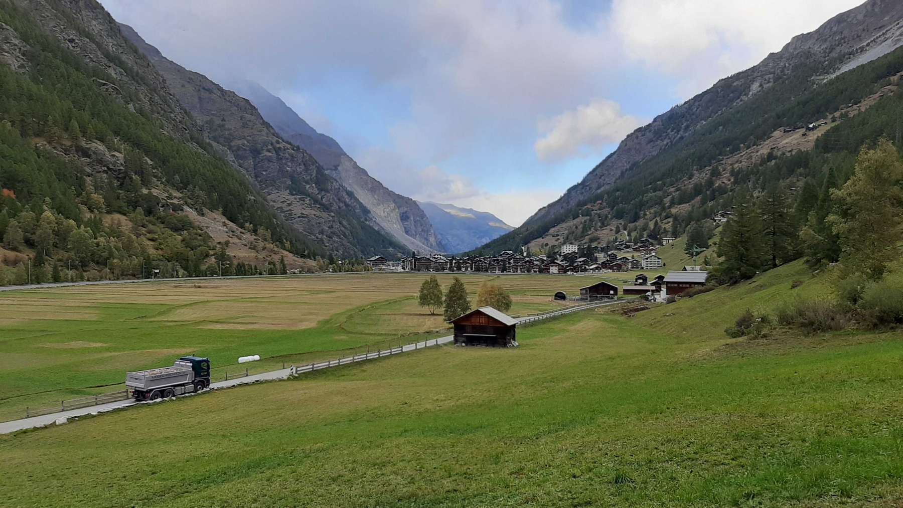 We are heading for Tasch a small town in Switzerland, near Zermatt, close to the Italian border. The scenery has changed dramatically. We thought that the German Black Forest was stunning but this is something else. The mountains, not hills, the mountains are high and imposing. They get stuff done here though, tunnels are just cut through the mountains all with mobile phone reception, power cables and pylons cut through the trees on the mountain side delivering power to someone somewhere high up. Stuff just works…