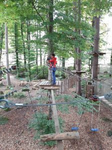 Interlaken won… and there just happens to be one of those tree-climbing parks here, a good one. 39 swiss francs (35 of your Great Britsh pounds). Sounds a lot but you can spend as long as you like there swinging about the trees, walking between them, bungee jumping, and zip wiring.