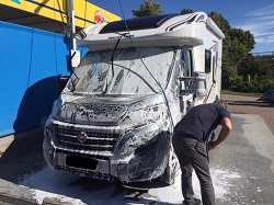 Time to move on. It’s a short 40 minute drive to Camping Langenwald so no rush. On the way we fill up with diesel and LPG for the heating and cooking. Oh and Jess gets a scrub…