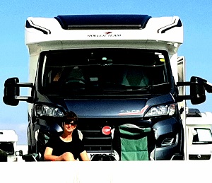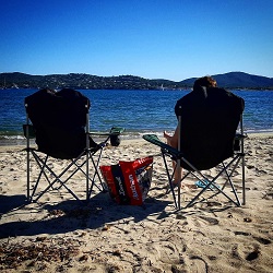 We set off and it is the best Monday you could have. The scenery is stunning and it’s hot, proper hot. Today we are making for a place that is basically a full resort but they have a large beach front area for camper vans with a full view of the bay that takes in Port Grimaud right round to St. Tropez. On the way we do look at another site but elect to continue to Camping Les Mures. The arrival is dead easy, but all the “on the beach” places are taken however we do get a good halfway position that when you open your door it’s a 10 metre walk and you are right on the beach with the full view…