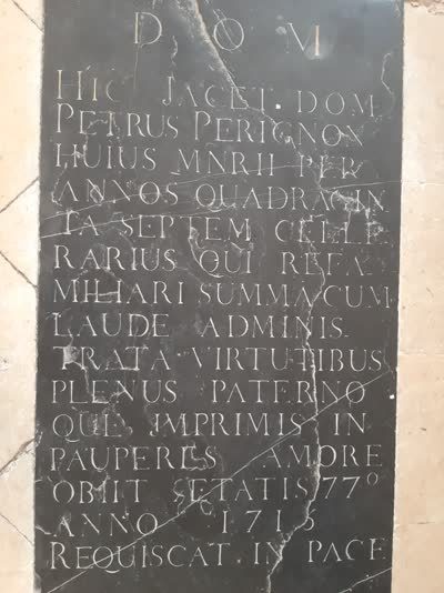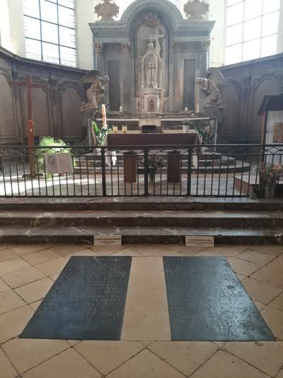 The parking spot is just outside of town, it’s quiet and peaceful here, deserted even. It is out of season after all. After a 10 minute walk, we find the abbey and make our way in. There he is is, right down at the front, the tomb of Dom Perignon. Splendid.