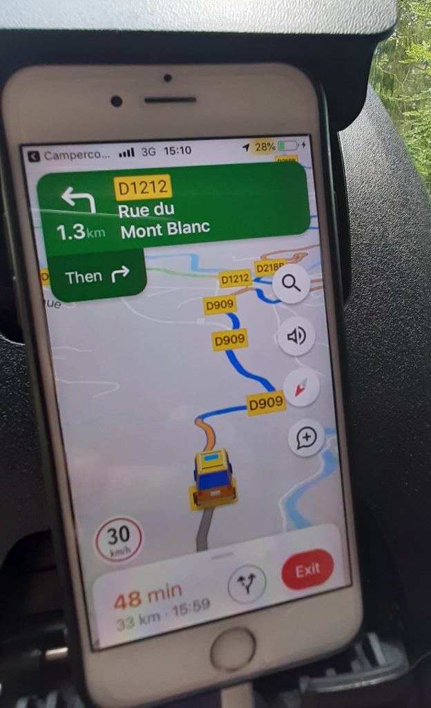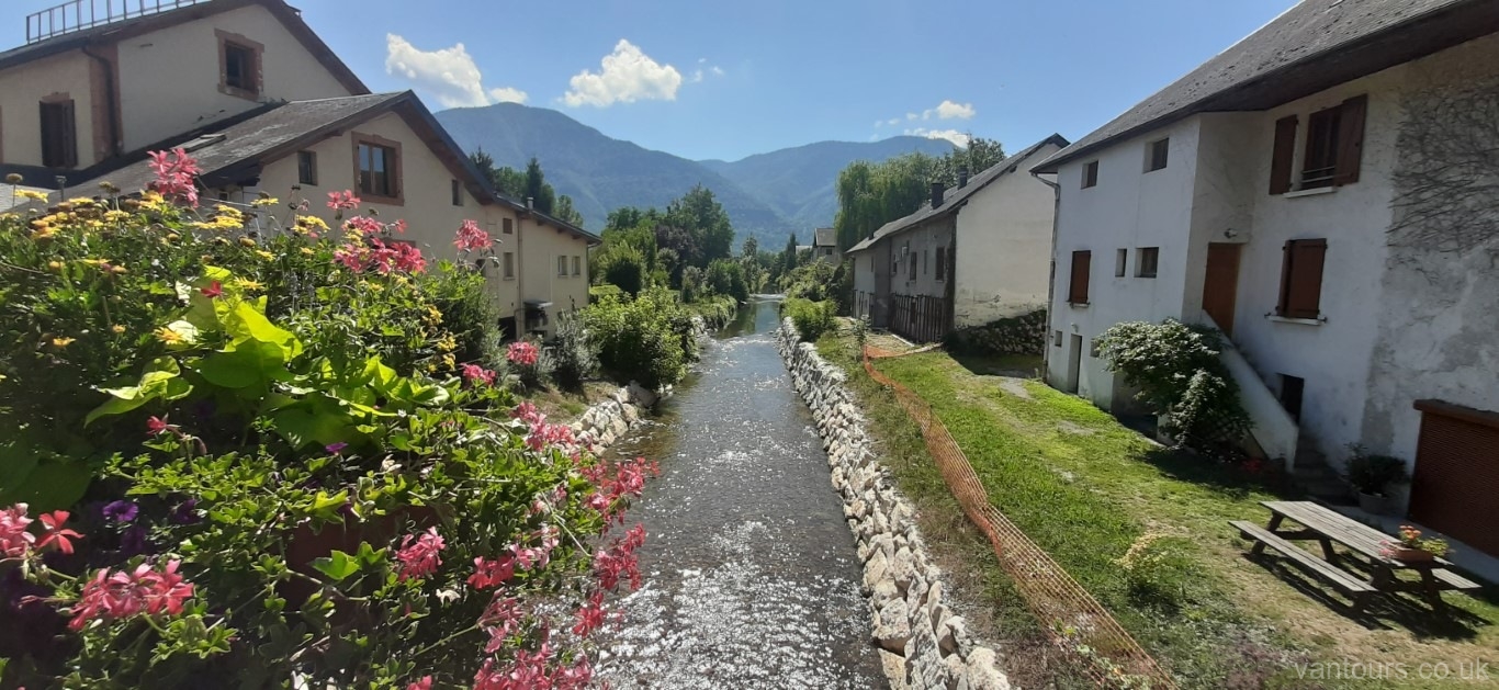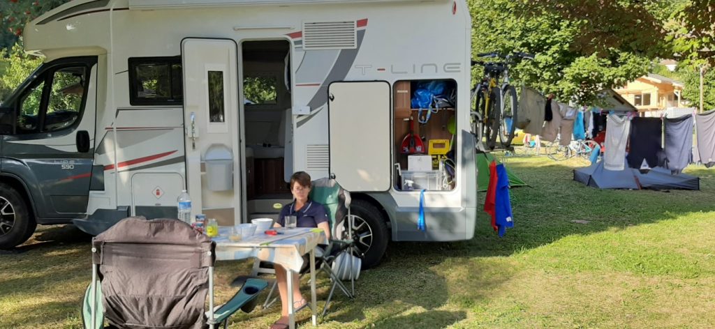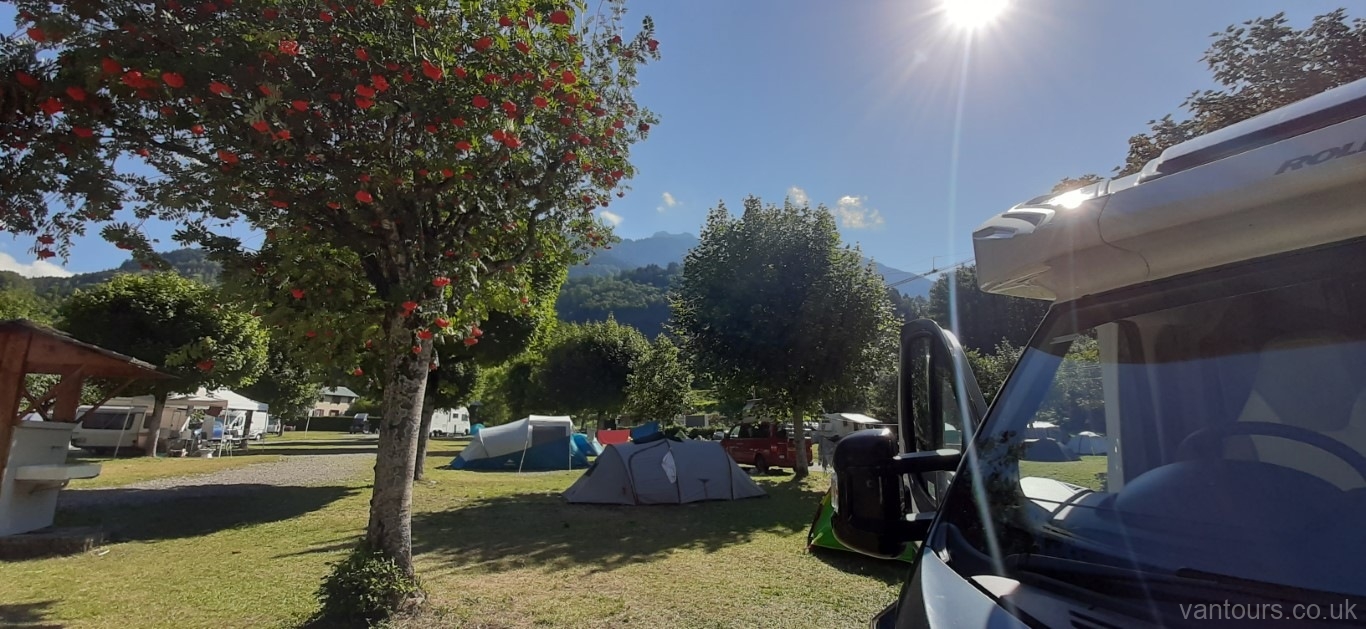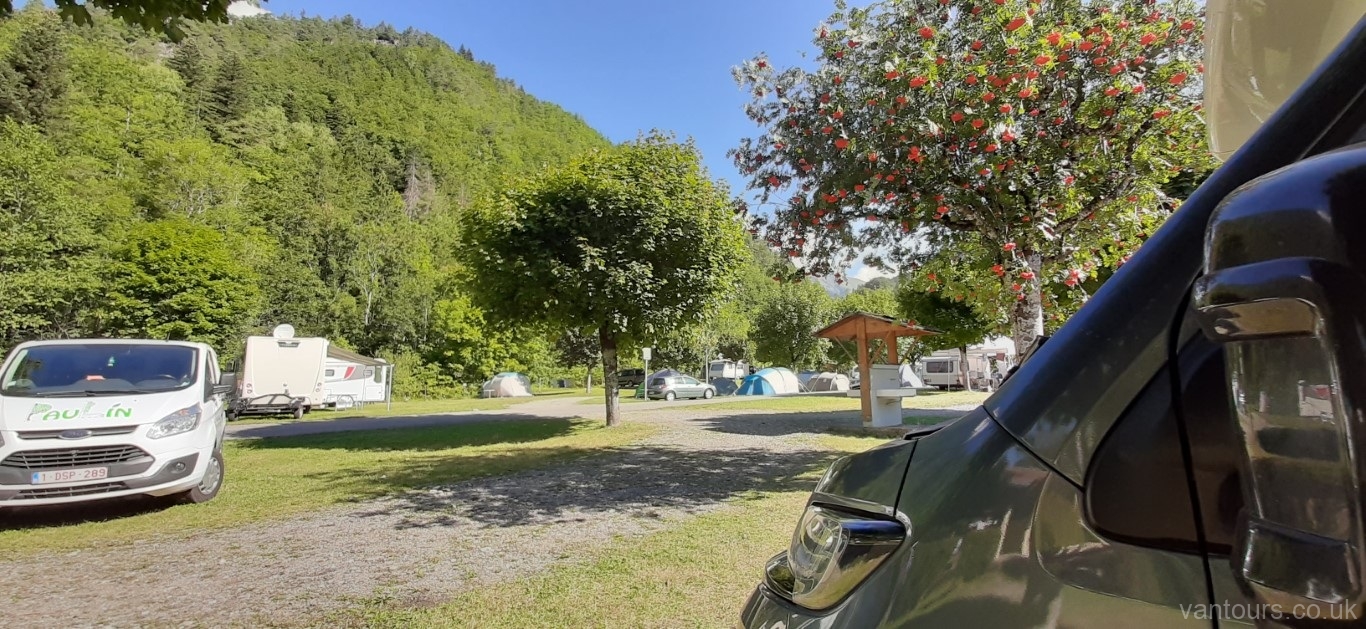 Today we are going a staggering 2km from the free parking, with a stream to the back of us and mountains to the front, to a small charming campsite which is considered to be a “hidden gem”, we shall see. It is just out of town and it’s called Camping Le Trejeux. The heat today is expected to be 32 – 33 degrees, even though the free spot is very beautiful and all that, we will bake, so we are in search of shade for today. Hayley found the place which was not on our usual resource of camping sites and stops so we thought that we would give it a go.