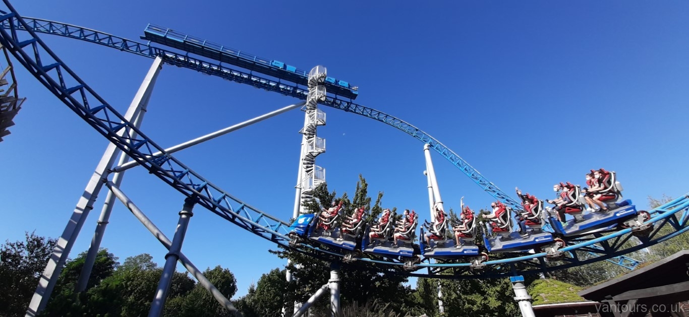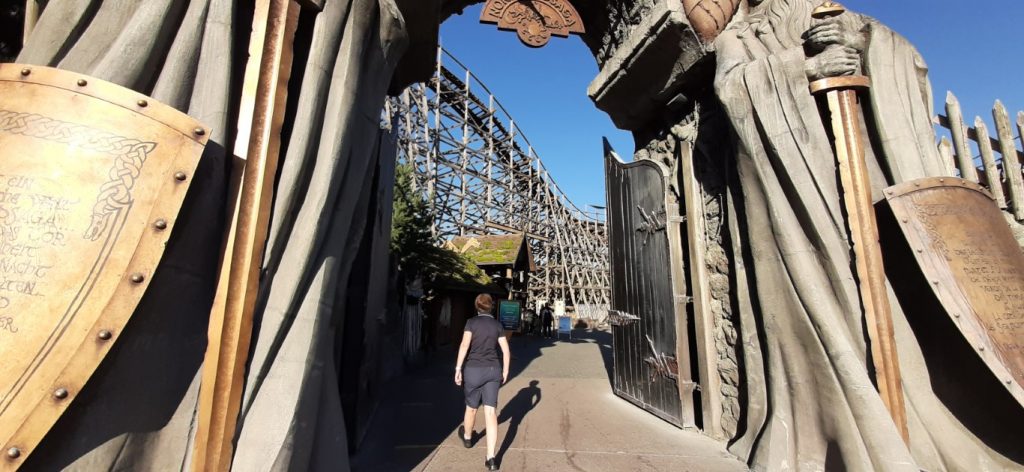 Hayley is like a child at Christmas and we are at the main gate just before 9, armed with masks and hand sanitiser we are among the first in and we are hot-footing it to the first ride of the day called “Wodan”, an old fashioned wooden coaster built in 2012 that can achieve a speed of 100kph. By 9:30 Hayley is being thrown around the “Wodan” coster. Not bad straight after breakfast.
