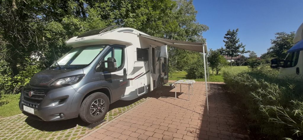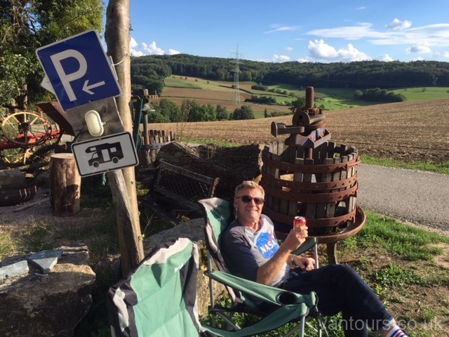 By 6 pm we are beaten and end the day on a strapped in simulator ride which is the best we have ever seen. Thankfully it’s a short walk back to the van, once there we use the camp facilities by having a shower, and by 7:30 pm we are off and on the road to Botzingen, a place we stayed on Sunday. Never heard of the place until this week and now we are here for a second night. We are worn out but it has been a great day and worth it in every way.
